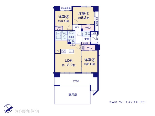| 備考・制限等 | 共有持分:1787.35平米×6705/347188有 アルコープ面積:2.04平米 ペット:可(成長時体長70cm体重10kgの小型犬・猫、1住戸2匹まで) テラス面積:14.45平米 専用庭面積:16.46平米 専用庭使用料:490円/月 |