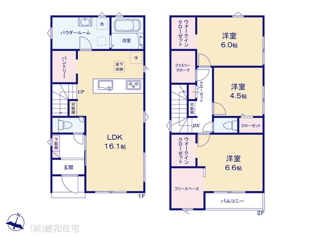パントリー、ウォークインクローゼット、ファミリークローク、フリースペースなど収納スペースもたっぷり!