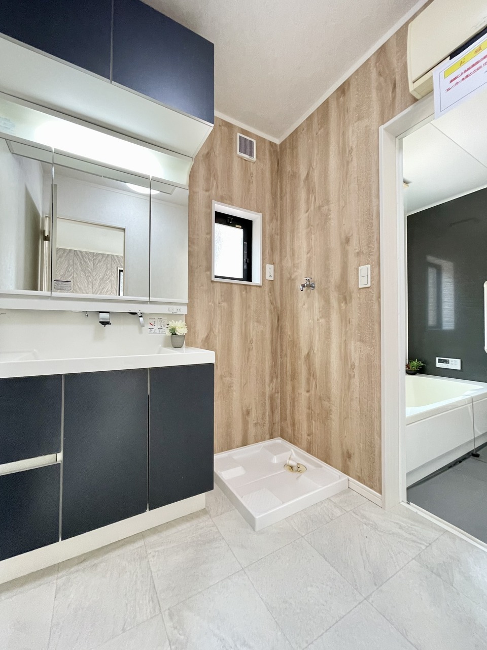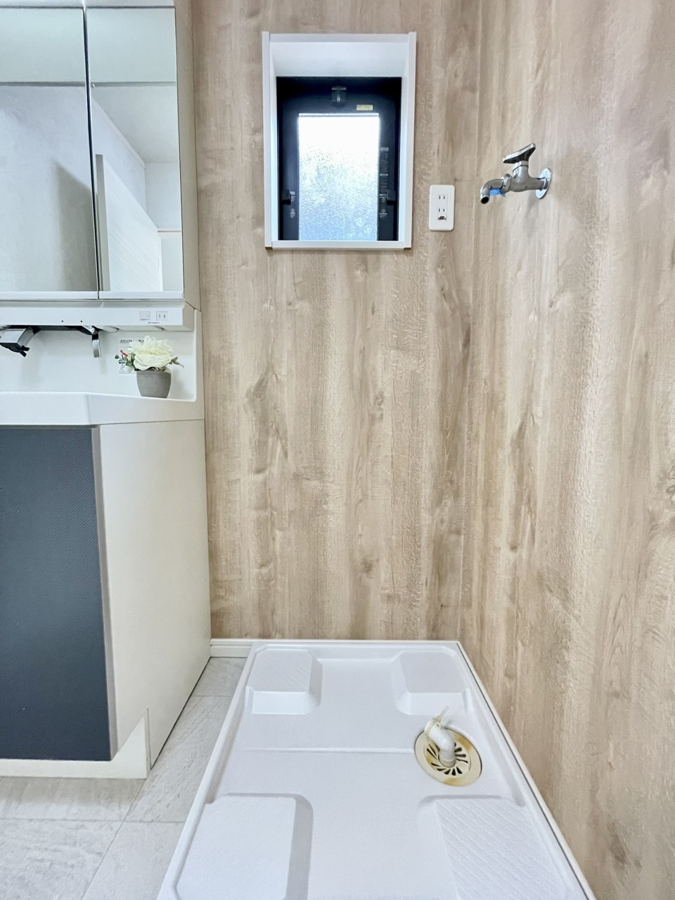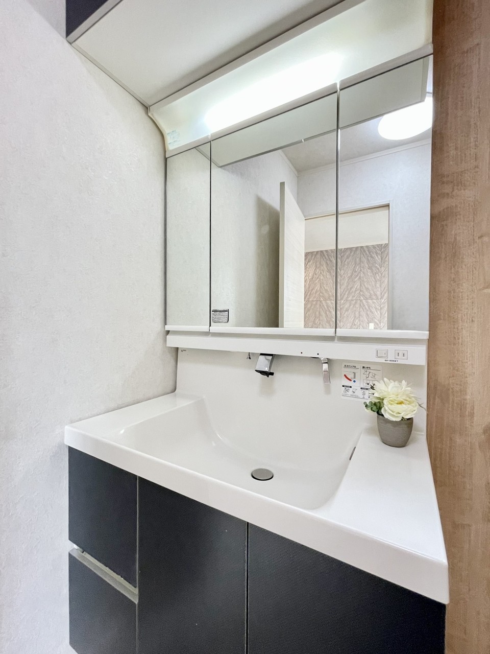 朝の身支度に便利なシャンプードレッサーはとっても便利です!シンク下の収納でアメニティ類のストックもバッチリ!