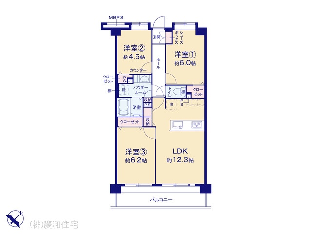 | 間取 | 3LDK (LDK12.3帖、洋室6.0帖、洋室4.5帖、洋室6.2帖) | ||