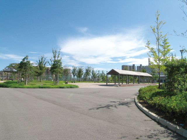 大型複合遊具や健康遊具があり、春と秋にはバラを観賞できる憩いの場。災害時には避難所として機能する。