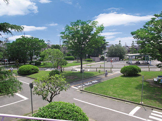 小学生以下を対象とした交通ルールを遊びながら楽しく学べる公園。遊具で遊べるエリアもある。