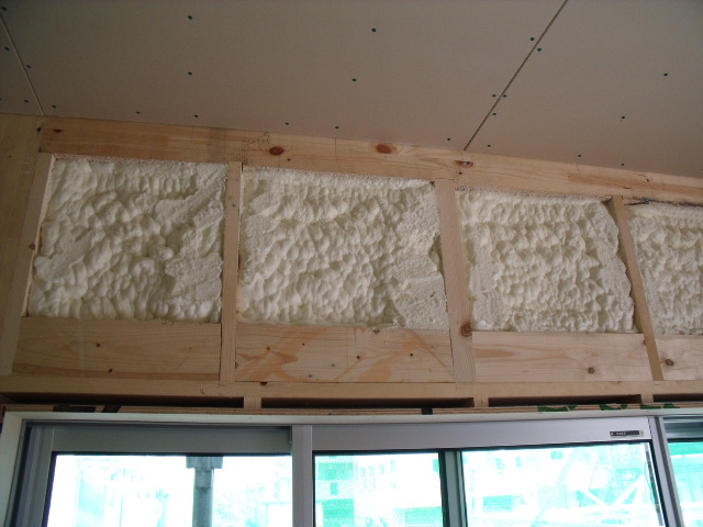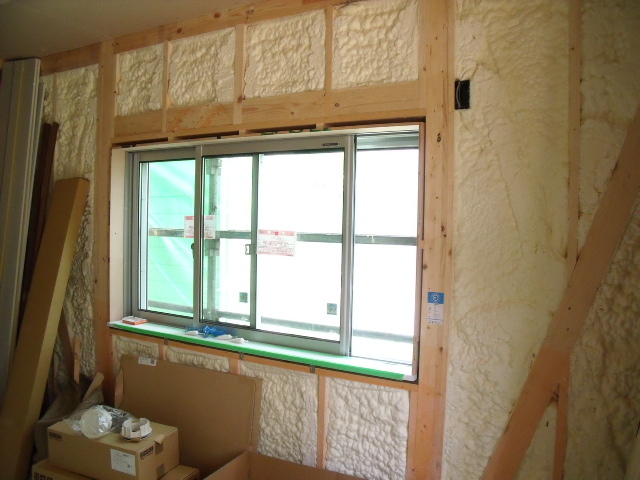泡断熱はサッシが取り付けられて小さい空間に対しても、均一に施工できるのが特長です☆