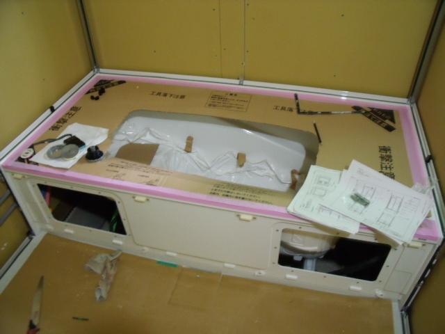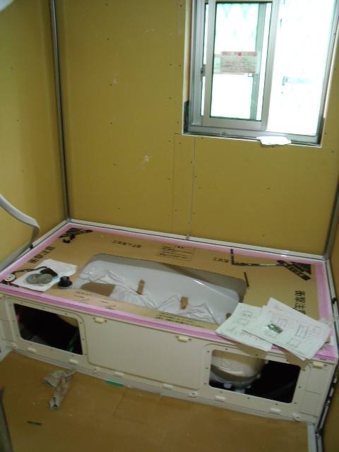 浴室ではユニットバスの設置工事がされています!