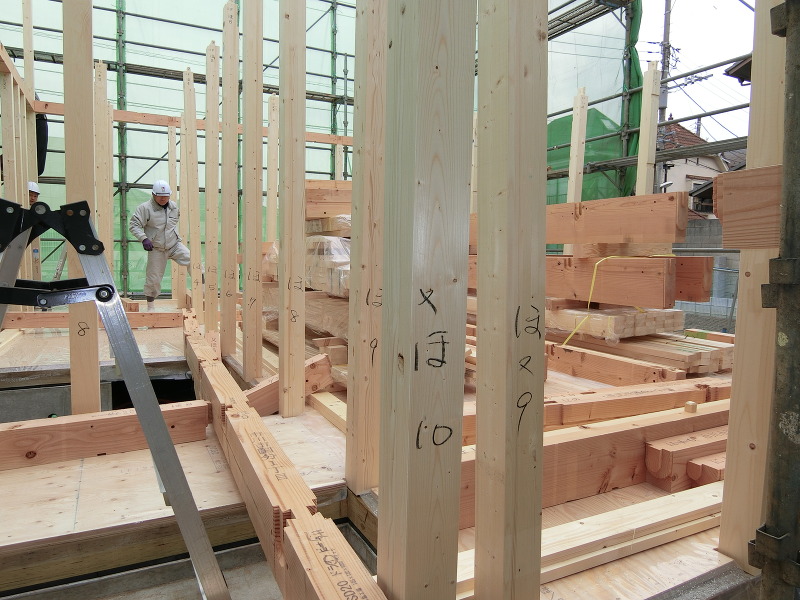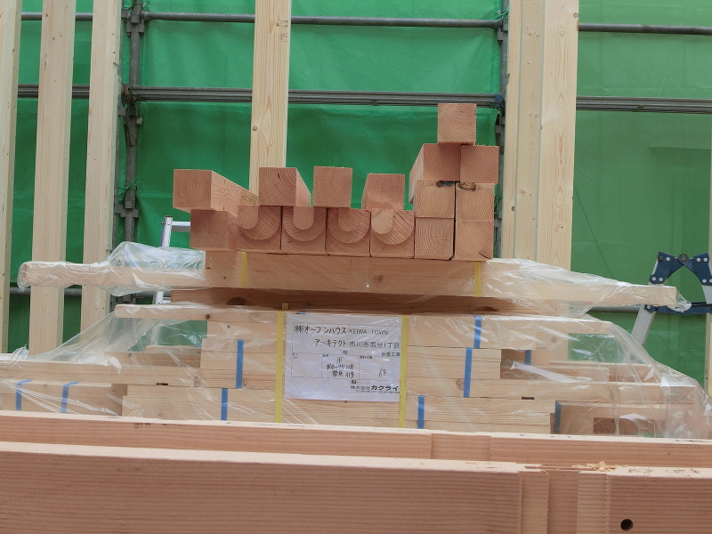 【プレカット】といって、工期の短縮と現場で木屑などのゴミの発生を最小限に抑える方法です。