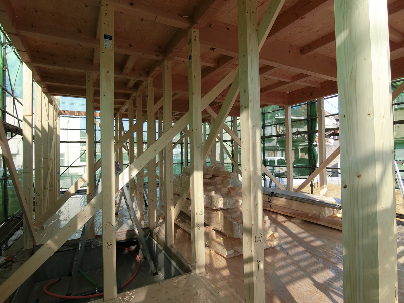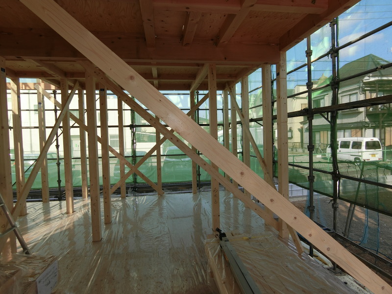 仮筋交いとは??その名の通り筋交いを入れるまでの仮の状態の筋交いの事です。