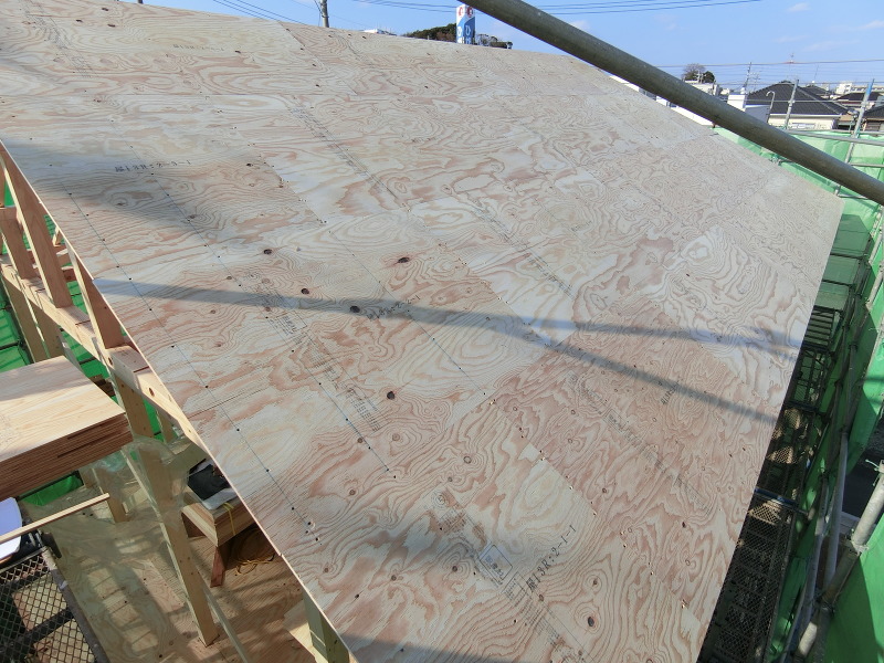 現場では屋根の下地材を貼り付けていました。
