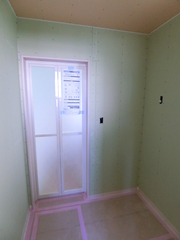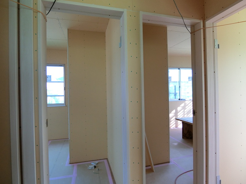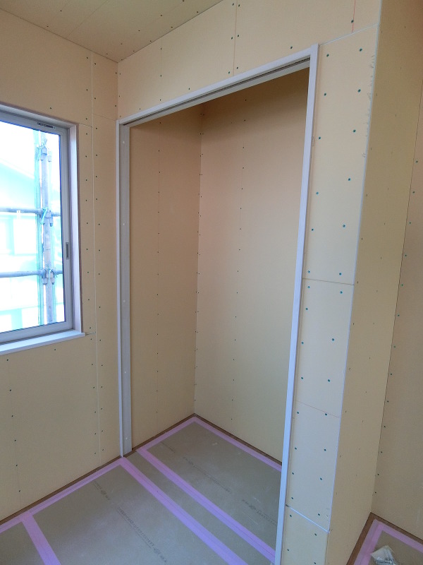 ドアや収納の建具を取り付けるための枠材を設置しました。