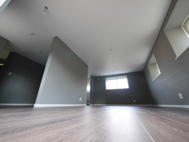 とっても広いリビングはシックなクロスと濃いめフローリングで落ち着いた空間に仕上がりました♪