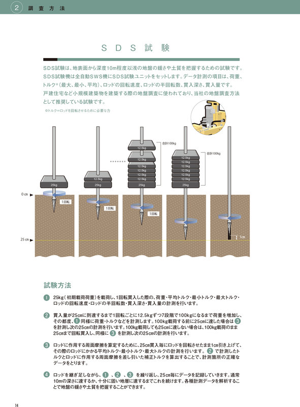SDS試験(スウェーデン式サウンディング試験)という方法での調査です。