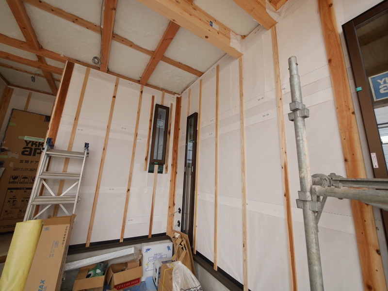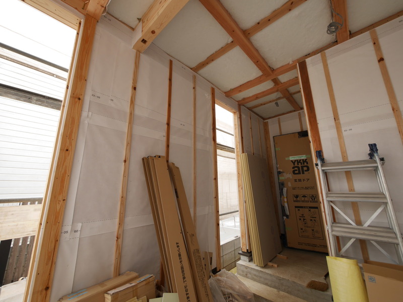 2号棟のバスルーム床下に断熱材を施工しました☆