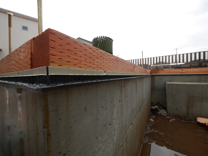 基礎の立ち上がり部分に張り付けられているのは断熱材です。