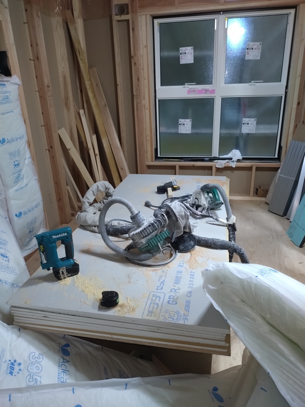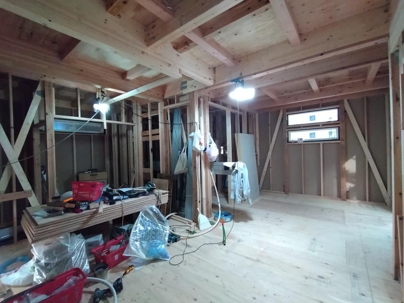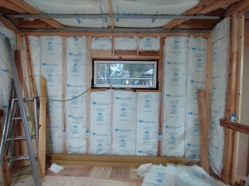 これから壁面には、断熱材、室内壁、クロスが施工されます。