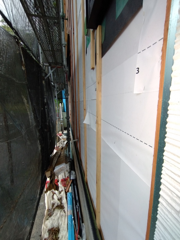 一見、数ミリの薄い紙ですが、壁外からの雨水の浸入を防ぎ、壁体内に生じる湿気を外部に排出することで、建物の結露を防ます。