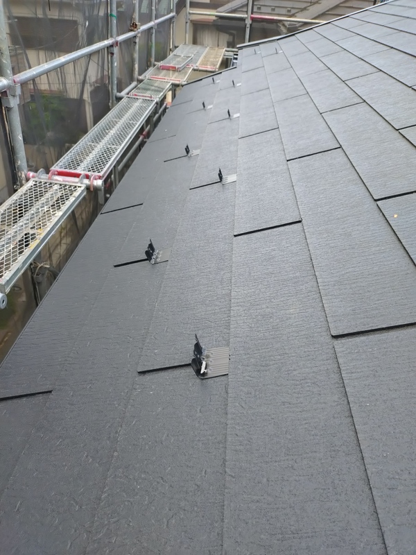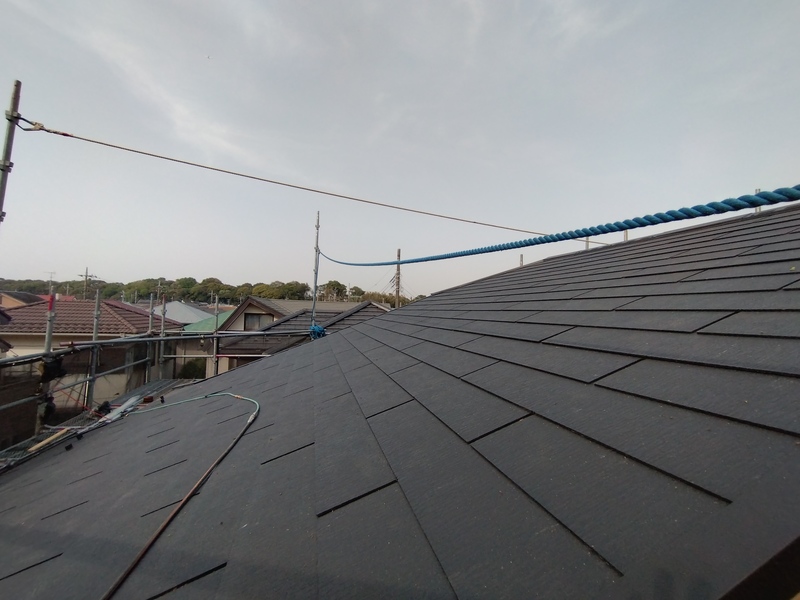 以前ご紹介いたしました、ルーフィング葺の上にスレート屋根材が敷かれ