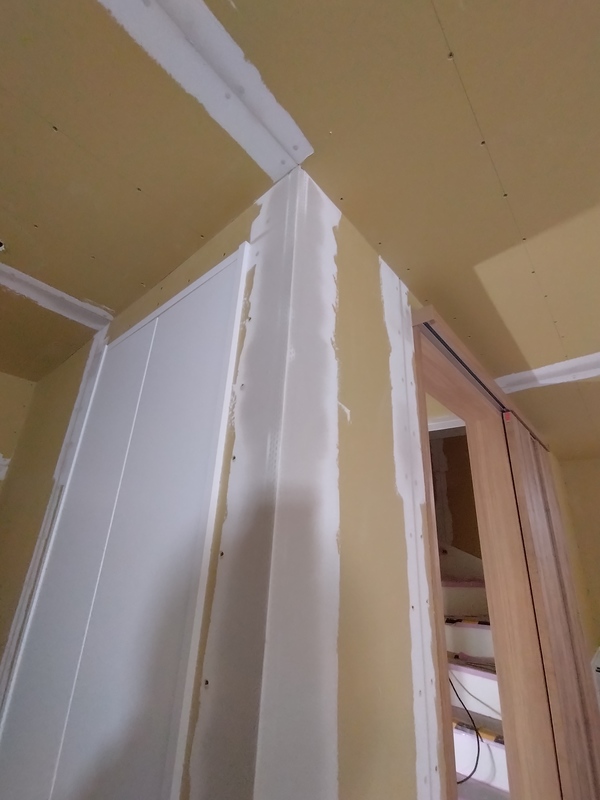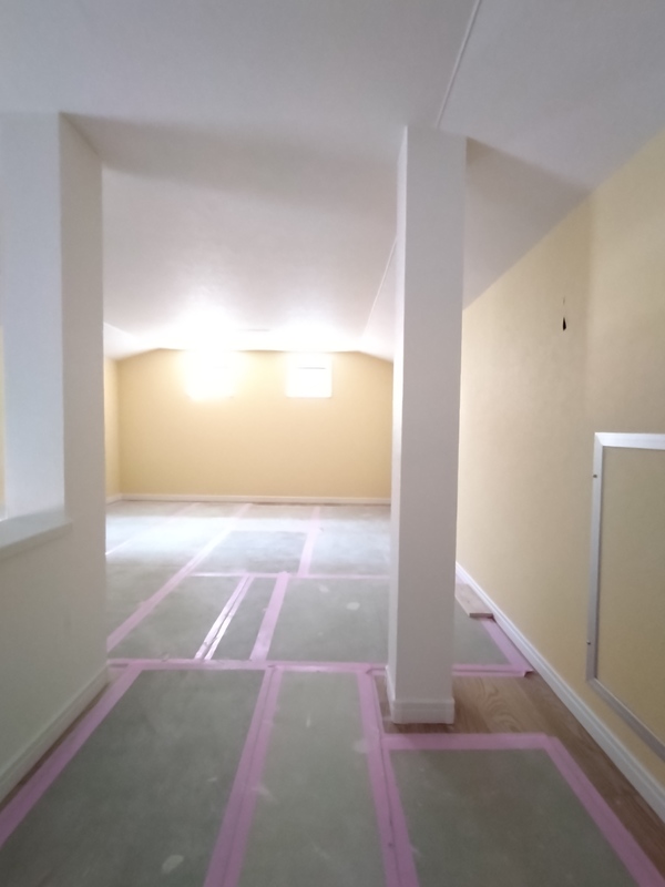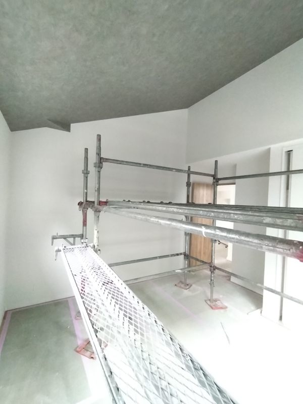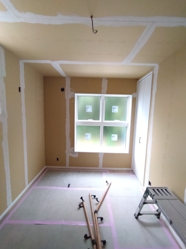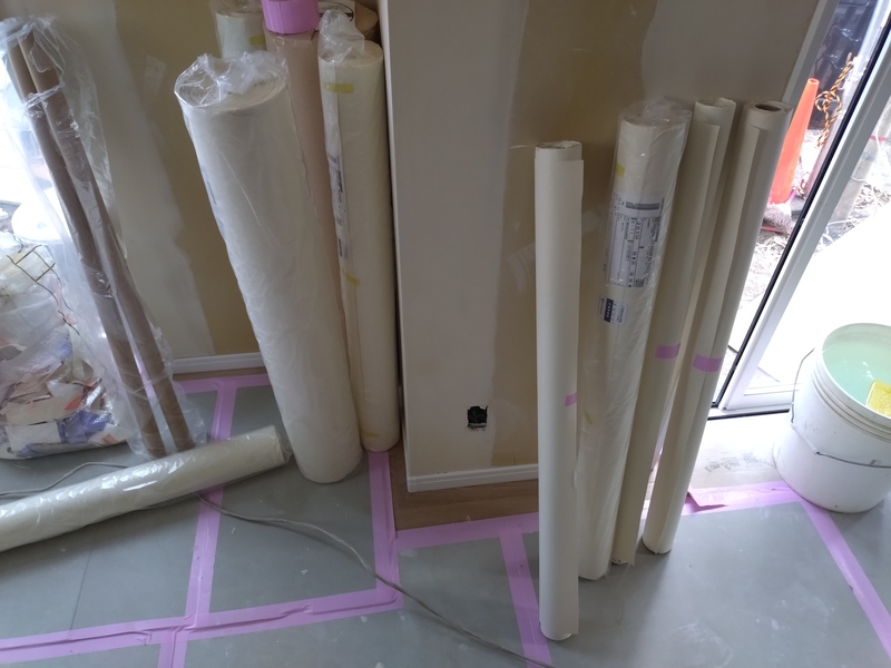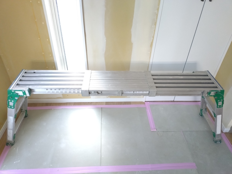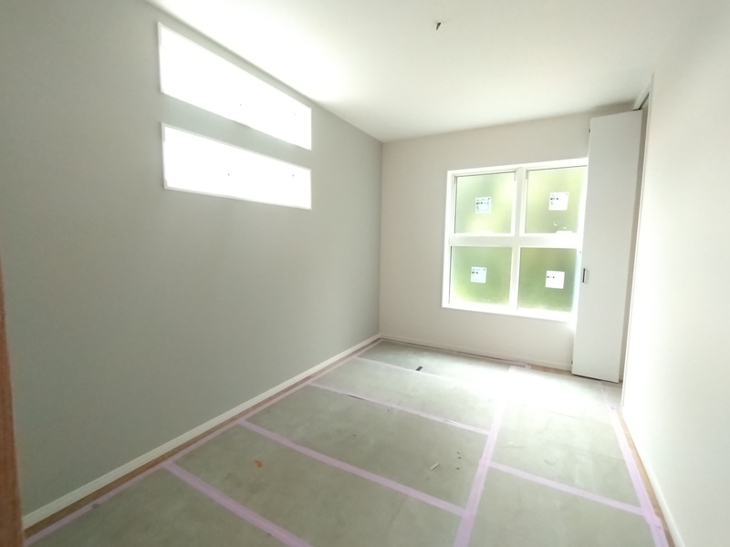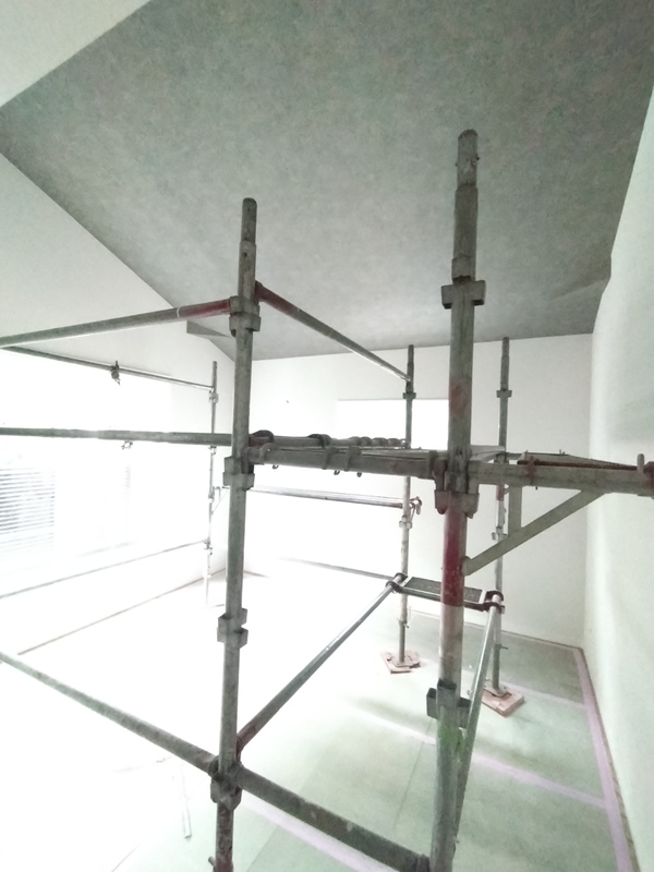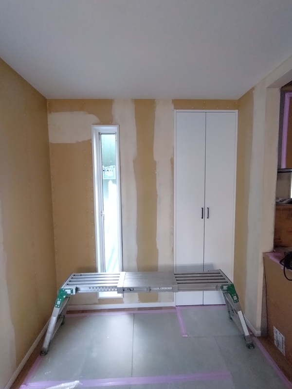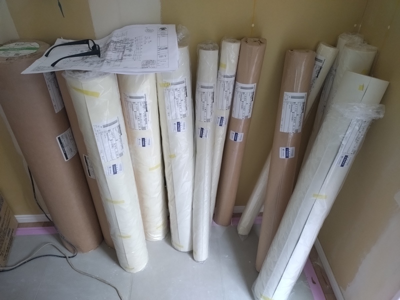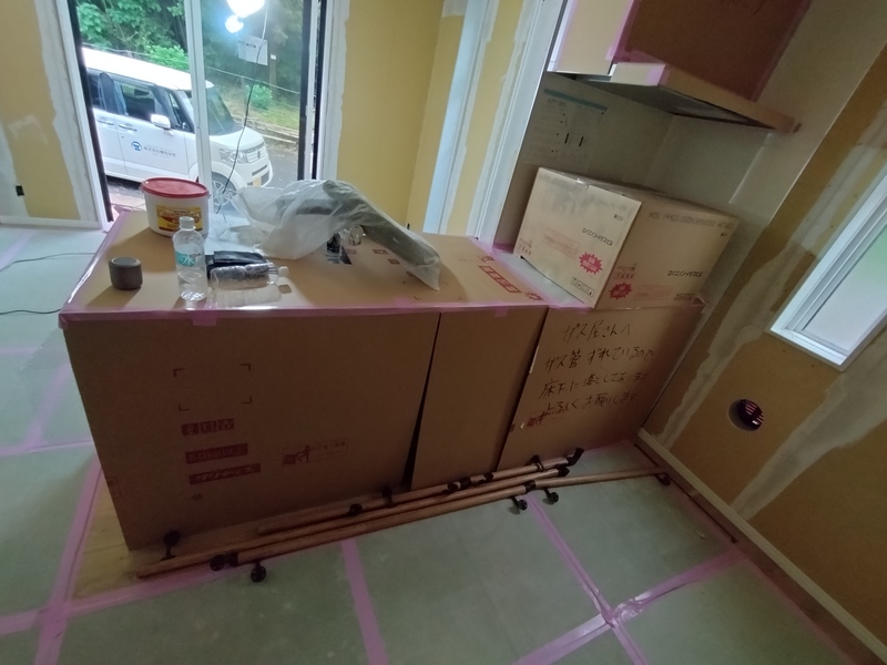 まだ養生されており全貌は見えませんが、今回はフラット対面キッチンを採用しています。