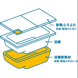 まずは、浴槽が二重構造になり、魔法瓶浴槽となります♪