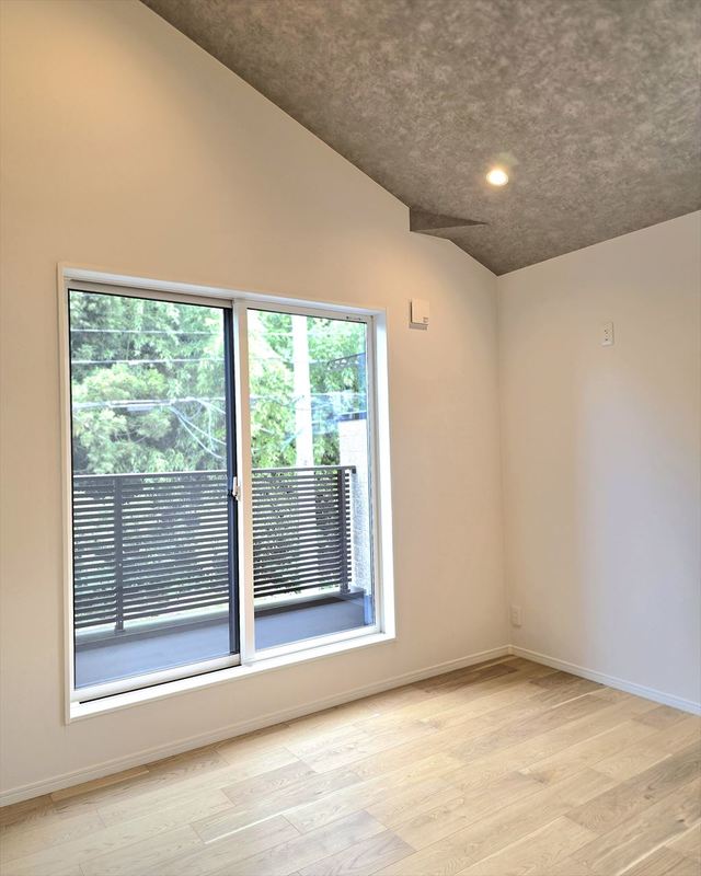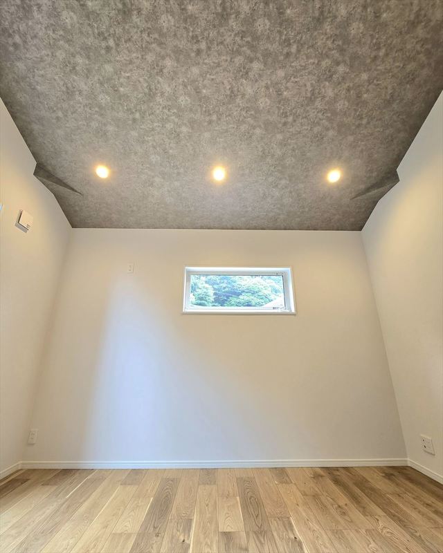 主寝室は勾配天井を採用しております。