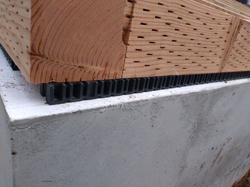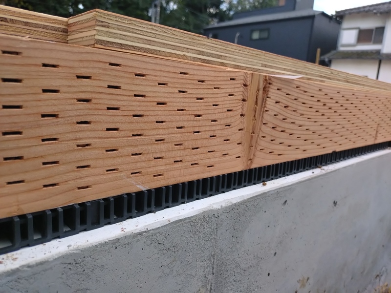 【基礎パッキン】とは土台と基礎の間に敷く物で、凸凹のある強化プラスチックで出来ています。